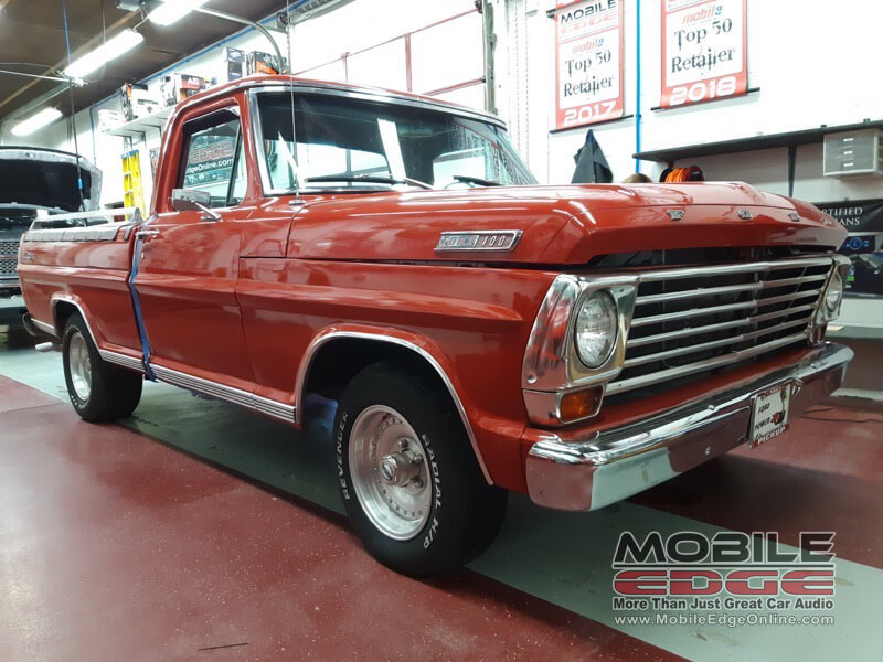 Ford F-100A client from Danielsville recently dropped into Mobile Edge to discuss upgrading his 1967 Ford F-100 Ranger with a new audio system. The client wanted something that would sound good but didn’t want to modify the doors in any way. After inspecting the vehicle, we designed a compact upgrade package that would not only sound good but would enhance the appearance and functionality of the truck’s interior.